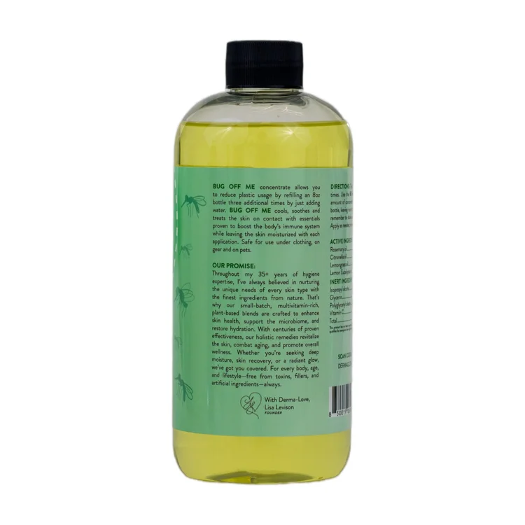 The BUG OFF ME 16oz Refill Concentrate provides the same plant-based insect-repellent protection in a larger, refill-friendly format. Designed for households, frequent outdoor use, and refill programs, this concentrate helps reduce single-use packaging while maintaining consistent performance. Ideal for refilling BUG OFF ME spray bottles, this formula supports long-term use without compromising skin comfort or protection. It delivers the same lightweight, non-toxic insect defense trusted for daily outdoor activities.