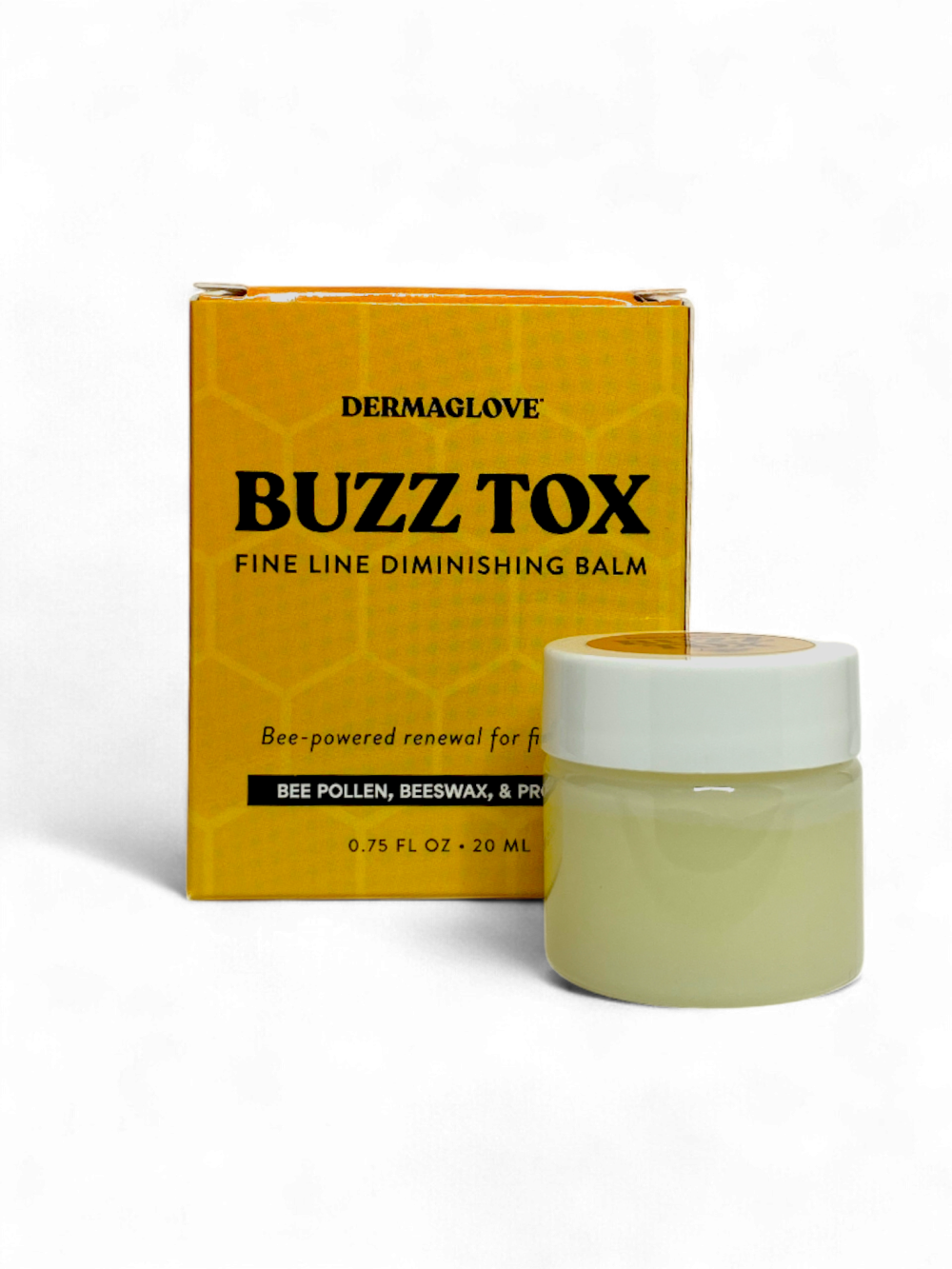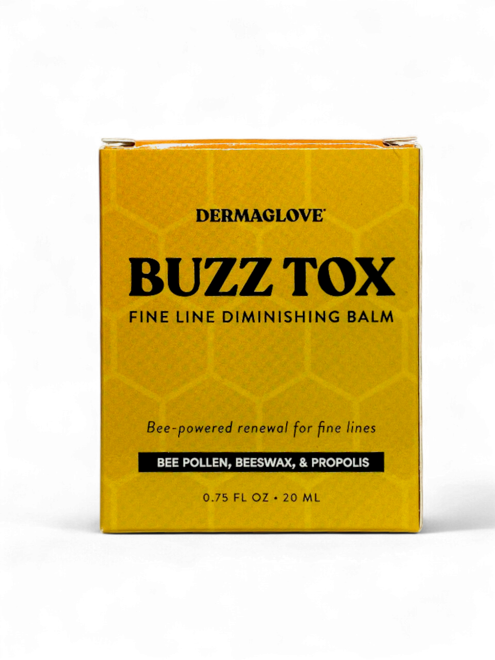BUZZ TOX is a concentrated, holistic treatment created specifically for the delicate skin around the eyes and expression areas. This bee-powered balm delivers deep hydration and targeted nourishment to help soften the appearance of fine lines, improve skin texture, and promote a smoother, more refreshed look. Formulated with carefully selected bee-derived ingredients and nourishing botanicals, BUZZ TOX works by supporting the skin’s natural resilience and moisture balance. Bee pollen provides antioxidant support to help protect against environmental stressors, while raw honey and almond oil deliver comfort and hydration to skin prone to dryness or fatigue. Beeswax forms a lightweight, breathable barrier that helps lock in moisture without heaviness, making this balm ideal for the fragile eye area. With consistent use, skin appears more supple, rested, and visibly revitalized. BUZZ TOX is designed for daily use and fits seamlessly into both morning and evening skincare routines. Its silky texture absorbs easily and layers well under other products, offering a natural alternative to aggressive treatments while supporting long-term skin wellness. Guided by DERMAGLOVE’s holistic skin science, BUZZ TOX transforms eye care into a gentle ritual—focused on nourishment, protection, and visible comfort rather than quick fixes.