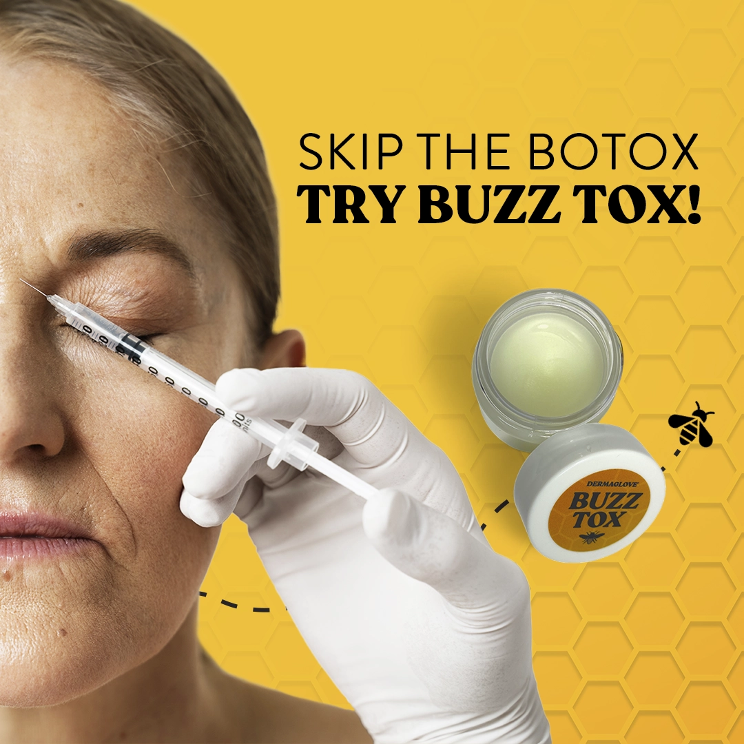 BUZZ TOX is a concentrated, holistic treatment created specifically for the delicate skin around the eyes and expression areas. This bee-powered balm delivers deep hydration and targeted nourishment to help soften the appearance of fine lines, improve skin texture, and promote a smoother, more refreshed look. Formulated with carefully selected bee-derived ingredients and nourishing botanicals, BUZZ TOX works by supporting the skin’s natural resilience and moisture balance. Bee pollen provides antioxidant support to help protect against environmental stressors, while raw honey and almond oil deliver comfort and hydration to skin prone to dryness or fatigue. Beeswax forms a lightweight, breathable barrier that helps lock in moisture without heaviness, making this balm ideal for the fragile eye area. With consistent use, skin appears more supple, rested, and visibly revitalized. BUZZ TOX is designed for daily use and fits seamlessly into both morning and evening skincare routines. Its silky texture absorbs easily and layers well under other products, offering a natural alternative to aggressive treatments while supporting long-term skin wellness. Guided by DERMAGLOVE’s holistic skin science, BUZZ TOX transforms eye care into a gentle ritual—focused on nourishment, protection, and visible comfort rather than quick fixes.