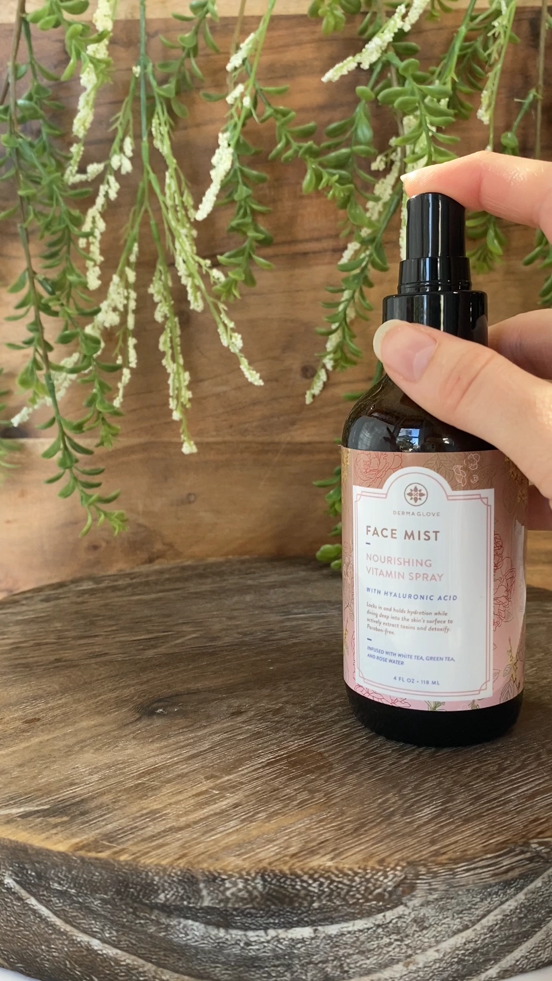 Instant Balance. Anytime Hydration. Effortless Glow. FACE MIST by DERMAGLOVE is a fine, refreshing facial mist designed to support skin hygiene, balance, and wellness—anytime, anywhere. Created as a versatile step in the Facing the Day routine, FACE MIST delivers lightweight hydration while helping tone and refresh the skin without disrupting its natural pH. Organically infused with Rose Water, Aloe Vera, Witch Hazel, Green Tea, and White Tea, this botanical blend works to calm irritation, tighten the appearance of pores, and provide antioxidant support against daily environmental stressors. The result is skin that feels refreshed, comfortable, and visibly more radiant with every use. FACE MIST is ideal before and after makeup application to help set and refresh the complexion, after shaving to soothe and rebalance the skin, or throughout the day as a quick hygiene and hydration boost. Its alcohol-free, non-toxic formula makes it suitable for all skin types, including sensitive skin. Whether used as part of your morning routine or as an on-the-go refresher, FACE MIST keeps your skin feeling clean, balanced, and glowing—because healthy skin should feel good all day long.