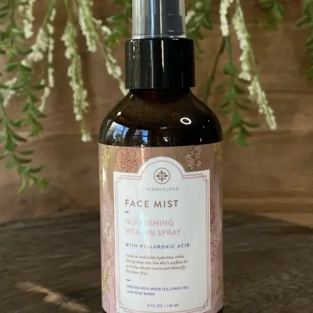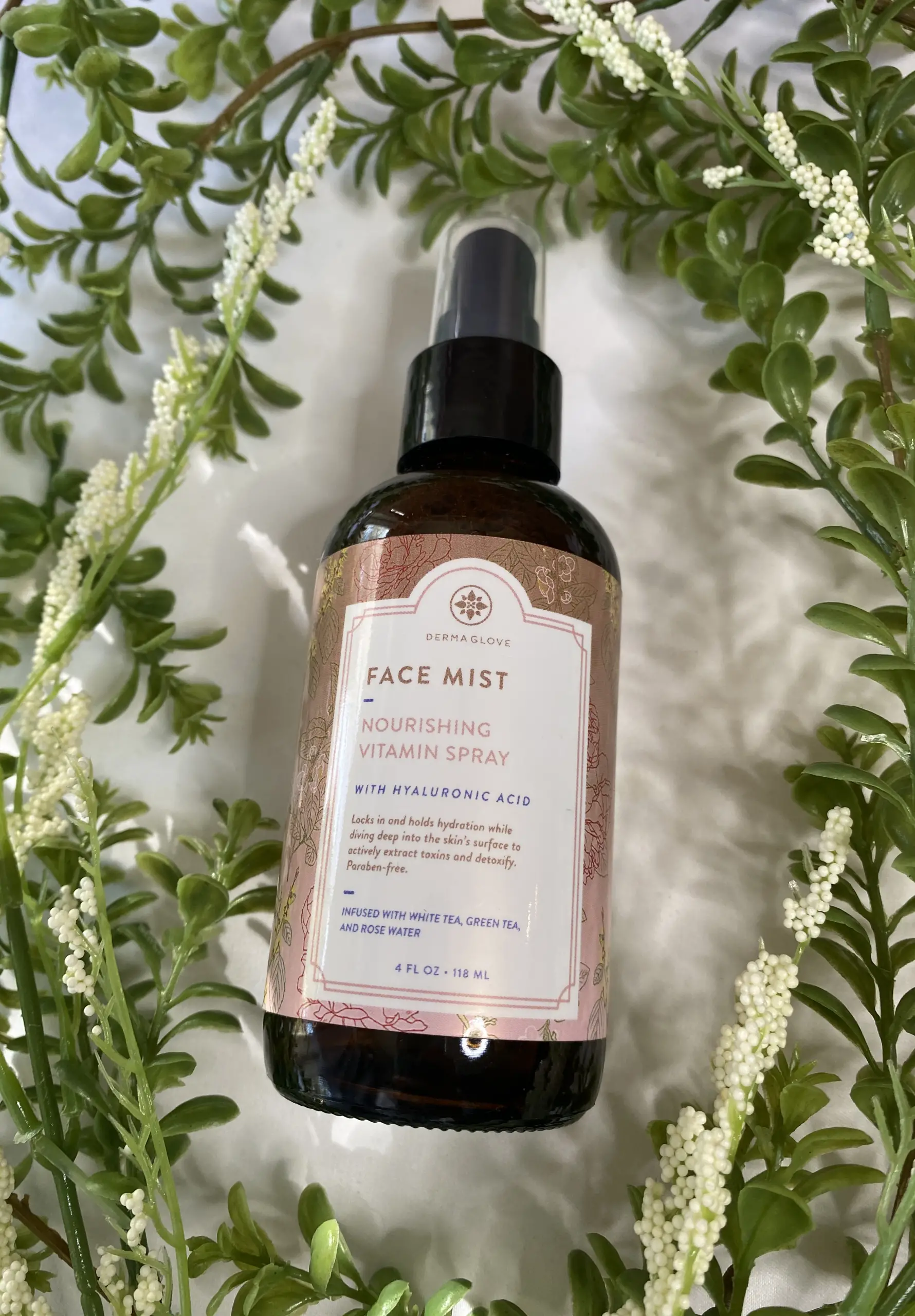 The DERMAGLOVE Face Mist comes in a tinted spray bottle.