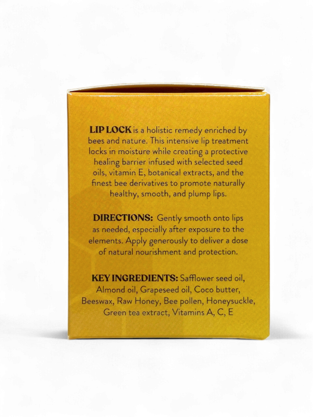 LIP LOCK is an intensive, bee-powered lip treatment designed to nourish, protect, and restore dry or compromised lips. This holistic balm locks in moisture while forming a breathable barrier that helps lips stay smooth, soft, and naturally plump.