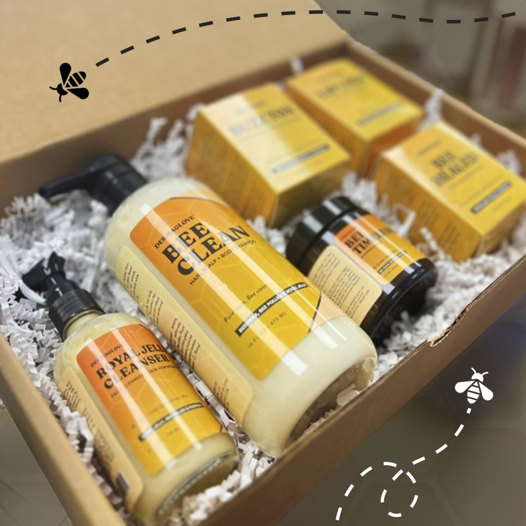 The Bee Collection is a full-spectrum skincare and hygiene system inspired by the remarkable intelligence of bees and the healing compounds they produce. For centuries, bee-derived ingredients have been used to protect, repair, and nourish the skin. At DERMAGLOVE, we’ve refined that wisdom through modern formulation science to create six synergistic products designed to support skin health from head to toe. This collection harnesses the unique benefits of Beeswax, Bee Pollen, Royal Jelly, Raw Honey, Propolis, and Bee Venom—each chosen for its ability to strengthen the skin barrier, deliver antioxidants, support collagen activity, and protect against environmental stressors. Together, these ingredients help calm irritation, improve texture, restore hydration, and promote visible skin resilience without harsh chemicals. Ideal for daily rituals or targeted care, The Bee Collection supports face, lips, hair, scalp, and body with clean, non-toxic formulations that work with your skin’s biology—not against it. This is holistic skincare at its most intentional: nature-powered, science-backed, and designed for real life. Included in The Bee Collection (6): • Bee Healed • Lip Lock • Buzz Tox • Bee Timeless • Royal Jelly Cleanser • Bee Clean